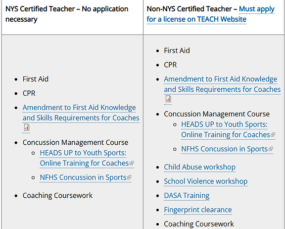 Complete information on Coaching Requirements nysed.gov/coaches